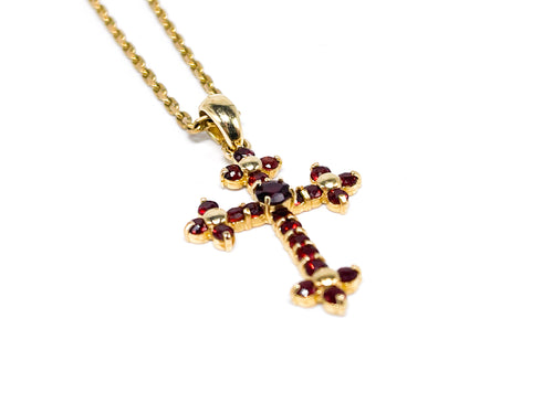 Antik - Vintage I Einzigartig I Kreuz + Kette I Damen Schmuck Set I Gold I 14 Karat 585K 8 Karat 333K I „puniceus“ bedeutet granatrot