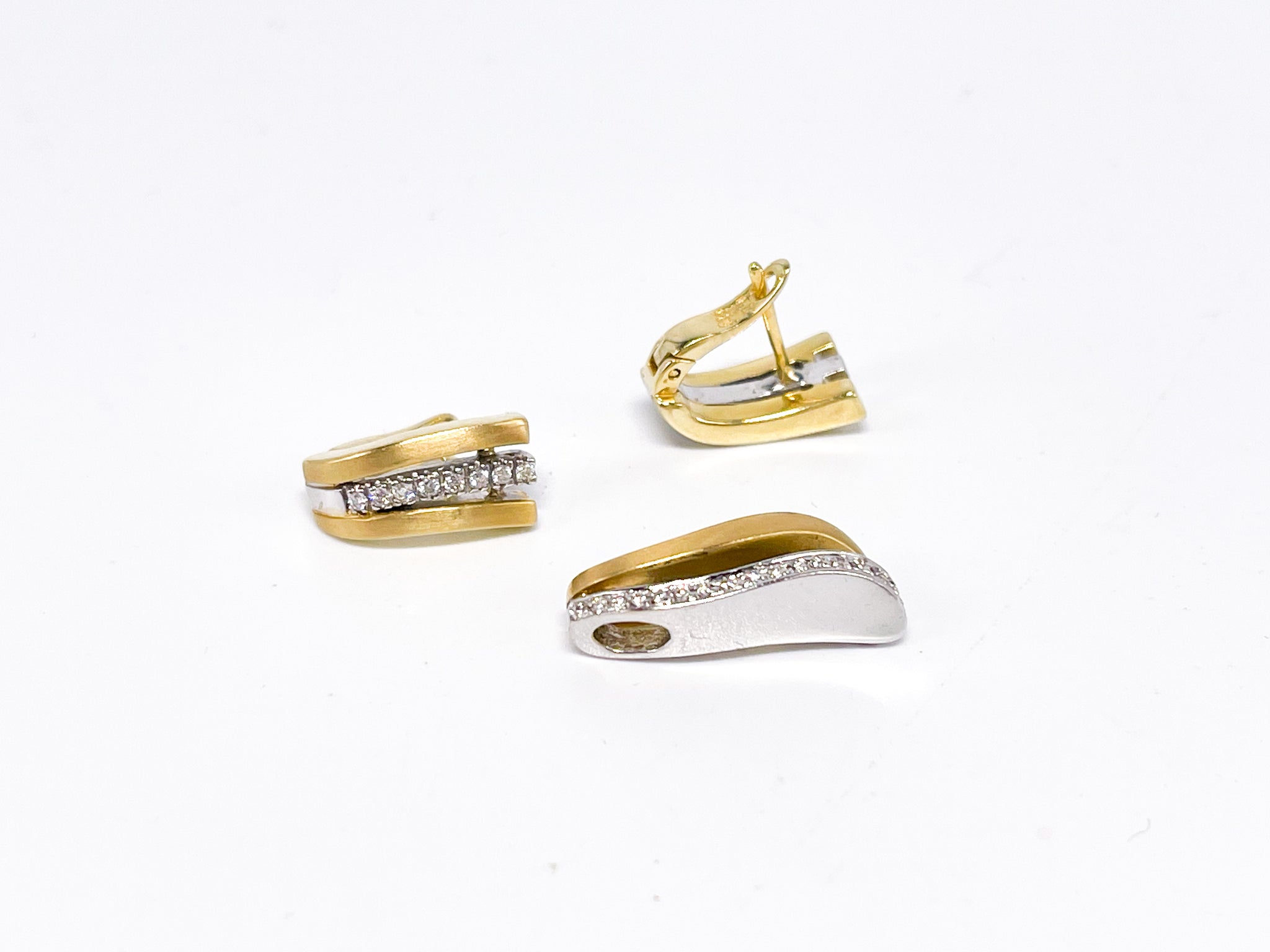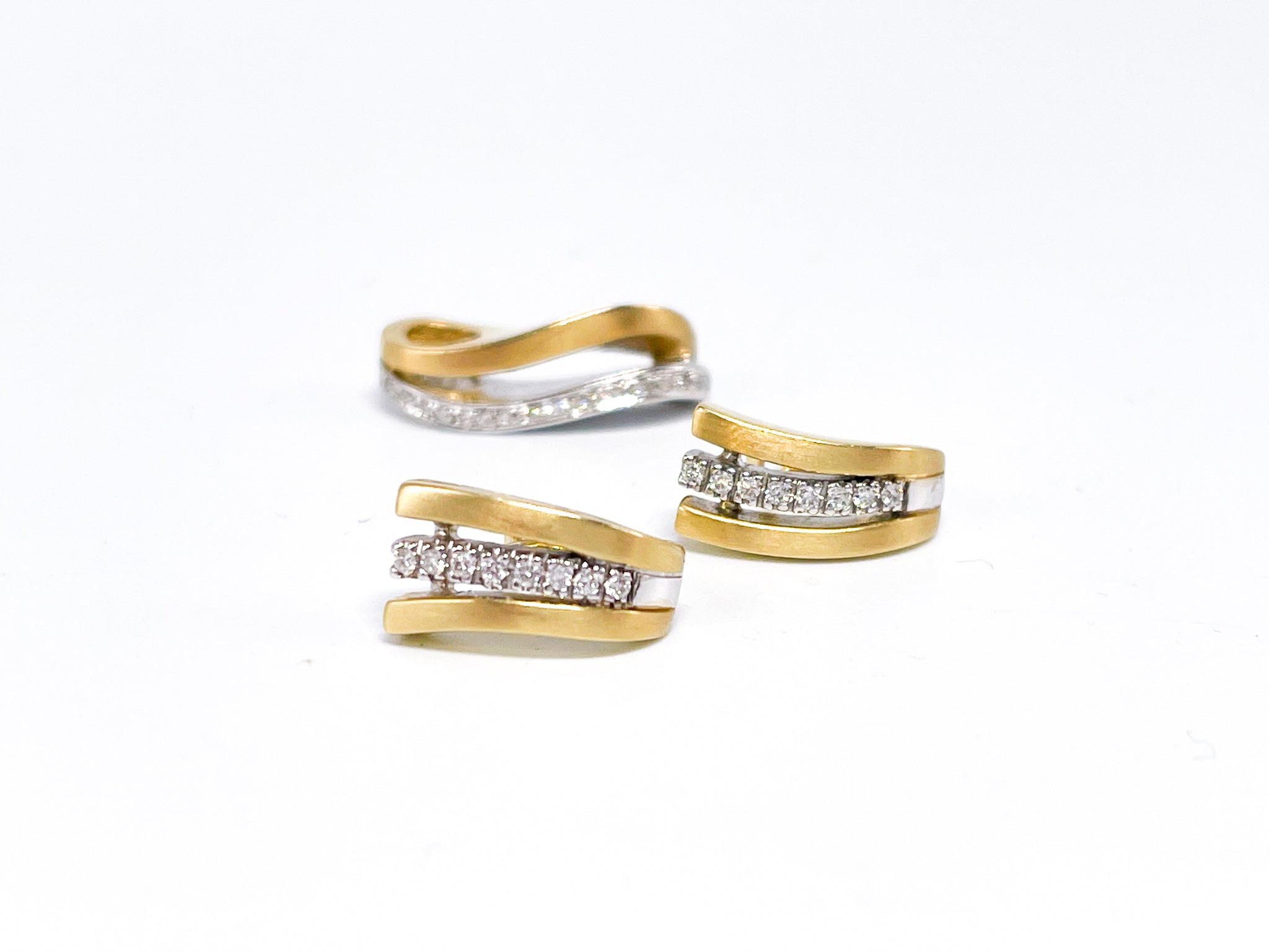 Erhellen Sie Ihre Garderobe mit diesem luxuriösen Bicolor Schmuck-Set! Inspiriert vom Glanz der Sterne, ist es aus 14 Karat 585K Gold und Weißgold gearbeitet und veredelt mit 0,24ct funkelnden Diamanten. Ein Schmuckstück, das jedem Outfit eine glamouröse Note verleiht!